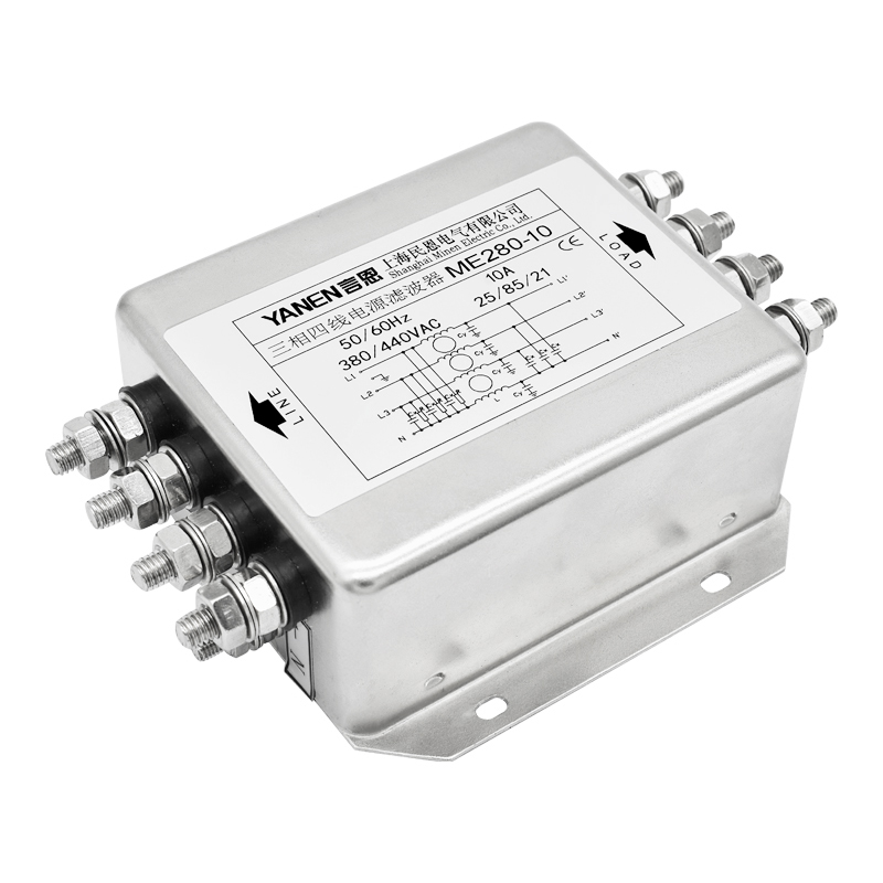 應用設備:三相四線電源濾波器,濾波效果優良,優異的高低頻濾波特性,泄露電流低,常規通用,體積小,便于安裝