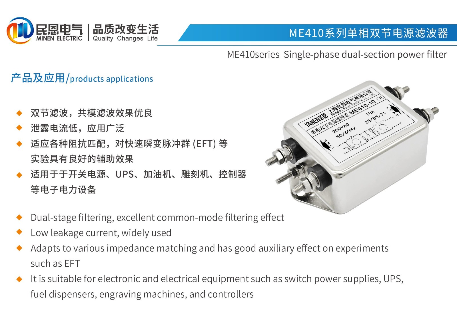 雙節濾波,共模濾波效果優良,泄露電流低,應用廣泛,適應各種阻抗匹配,對快速瞬變脈沖群 (EFT) 等實 驗具有良好的輔助效果。