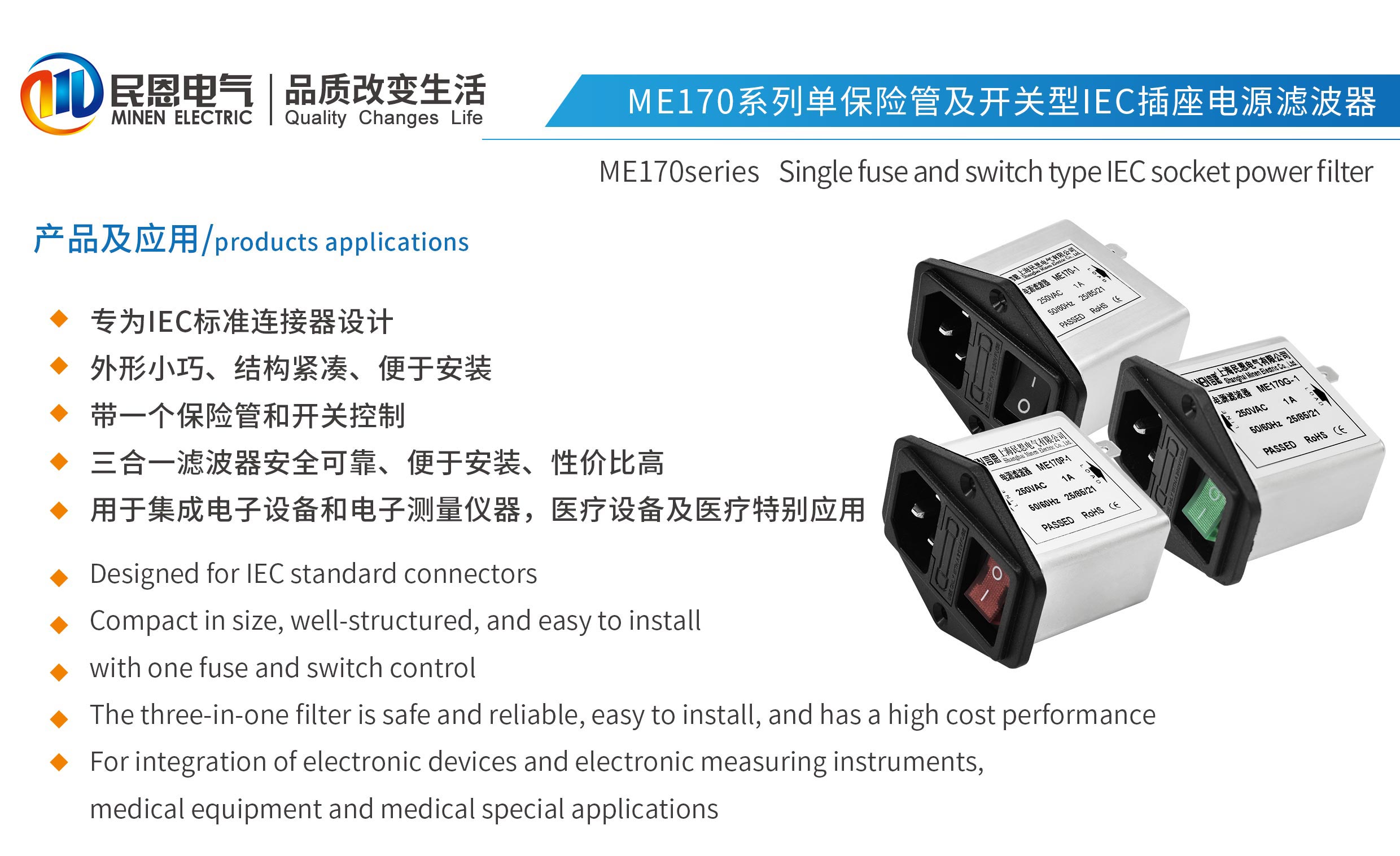 ME170系列單保險管及開關型IEC插座電源濾波器