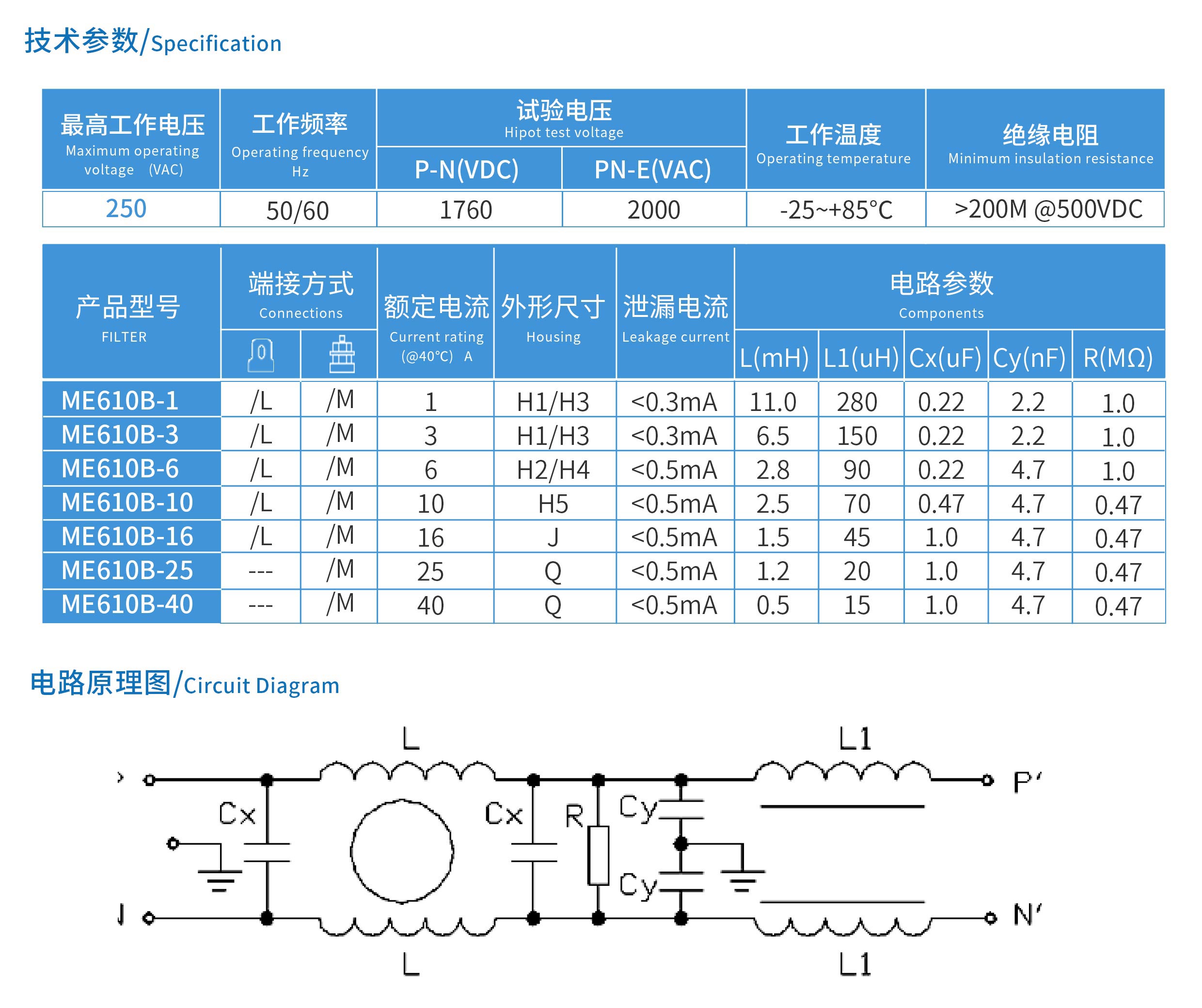 ME610B系列醫療專用雙節增強型電源濾波器