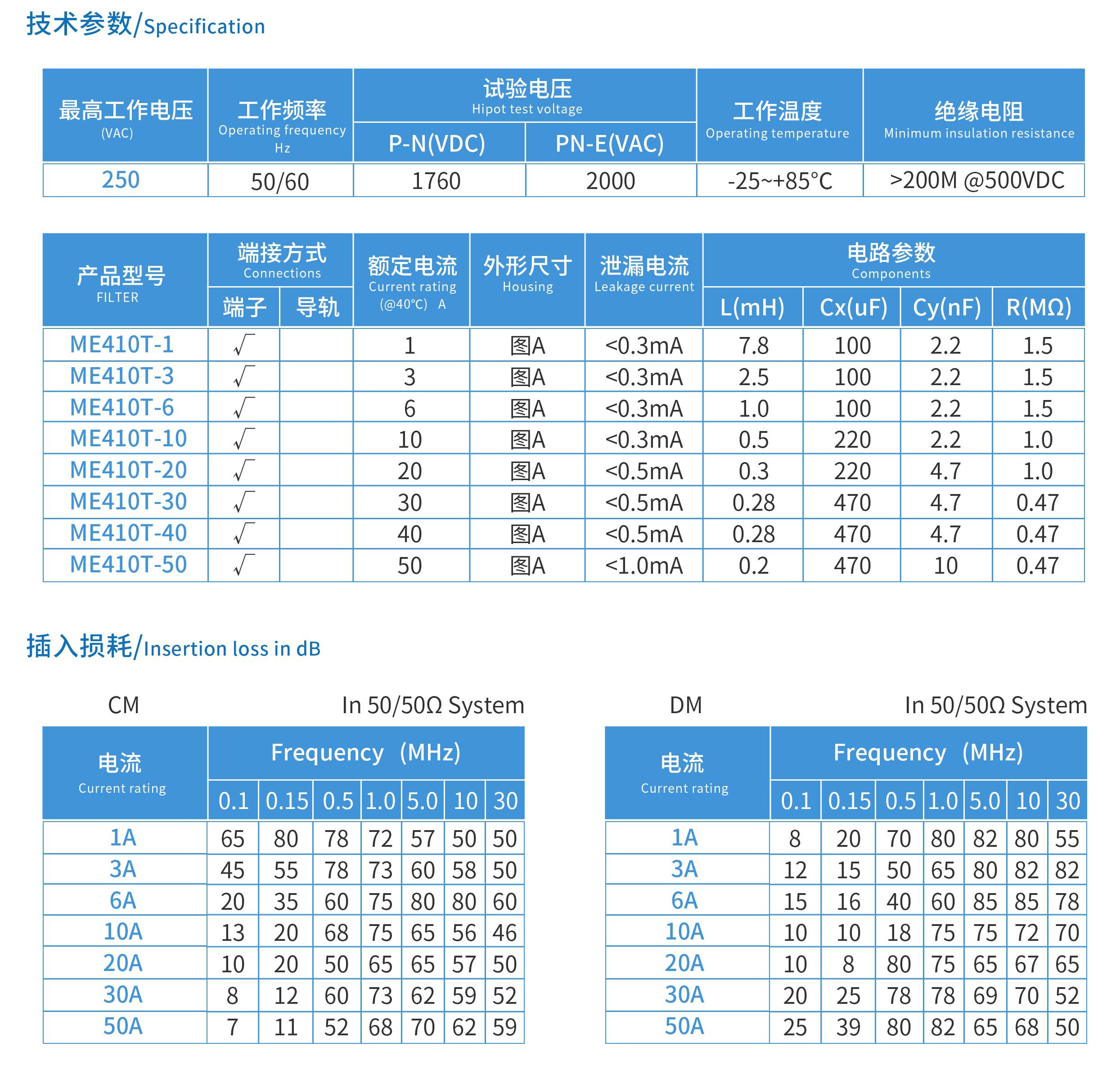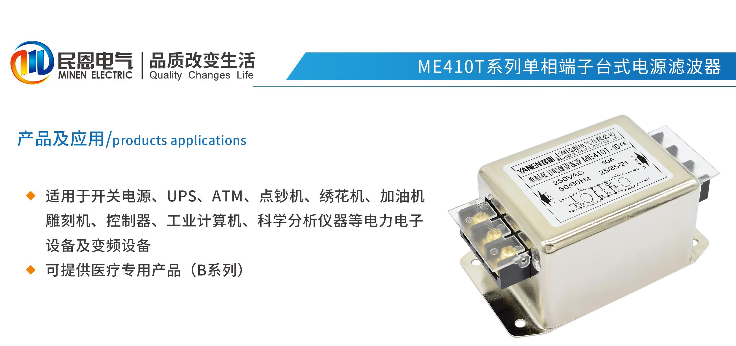 ME410T系列單相雙節電源濾波器